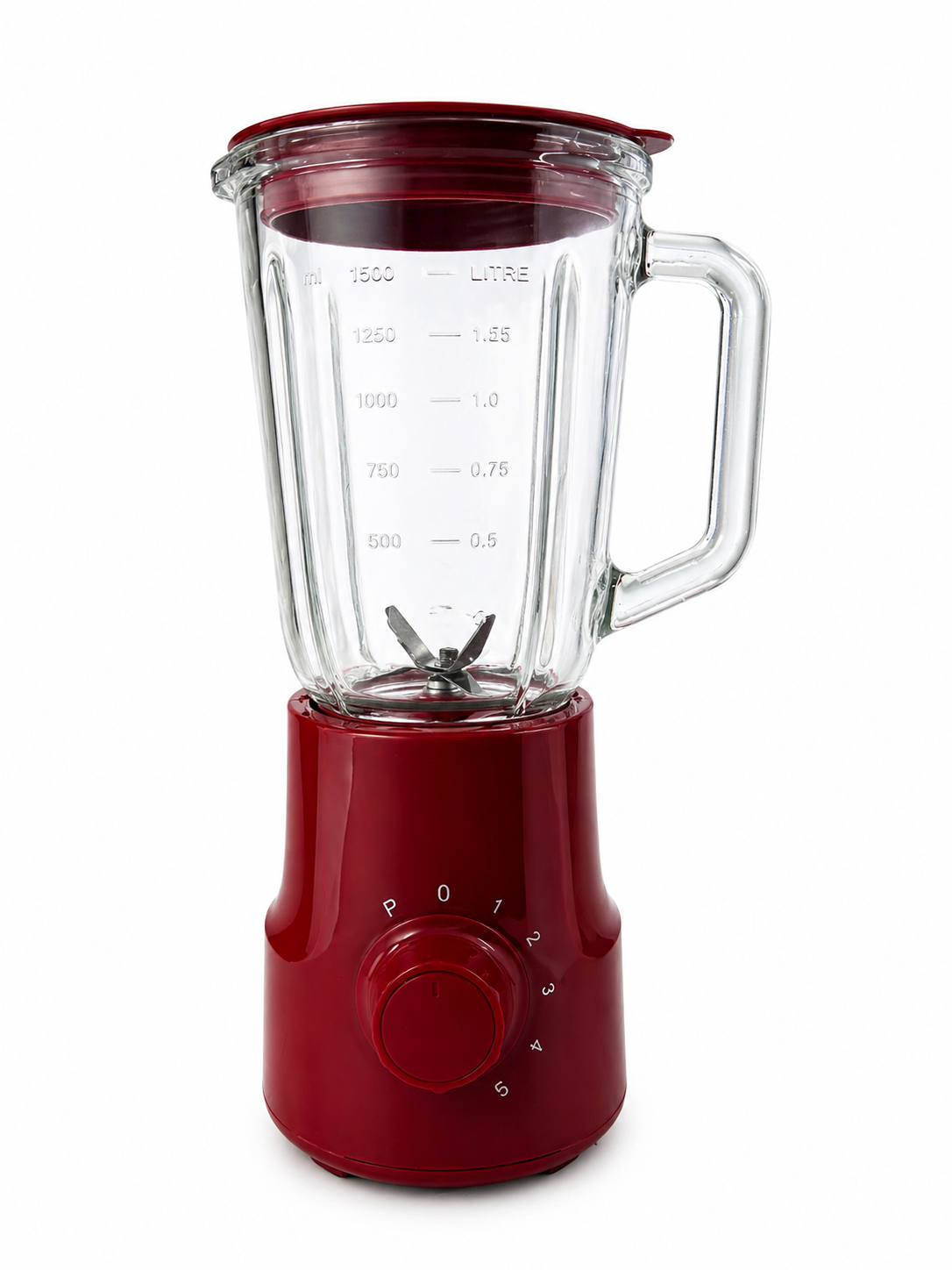 Mixér je vybaven skleněnou nádobou o objemu až 1,5 litru, která je odolná vůči vysokým teplotám, neabsorbuje pachy a je vhodná i pro přípravu více porcí najednou. Kovové sekací nože zajišťují efektivní a rovnoměrné mixování.